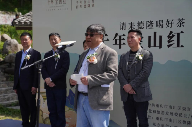 悠悠鼓乐回荡山间,阳光洒入青翠茶山。重庆古树茶研究院名誉院长刘勤晋教授说,金佛山野生古茶树是仅次于云南野生大茶树群的又一野生大茶树集聚地,茶学界认为南川应是茶树发源地之一,陆羽《茶经》“茶者,南方之嘉木也,一尺二尺,乃至数十尺。其巴山峡川有两人合抱者,伐而掇之”早有记载。据了解,近年来德隆镇大力发展古树茶产业,培育完成古树茶产业8200亩,年产鲜叶20万斤,建成金山红等古树茶生产龙头企业,当地茶农收入逐年递增。此次开幕式上,区文旅委副主任喻显玉为南川大树茶历史文化馆授牌,区委农工委副书记胡彬为重庆南川大树茶资源圃授牌。
